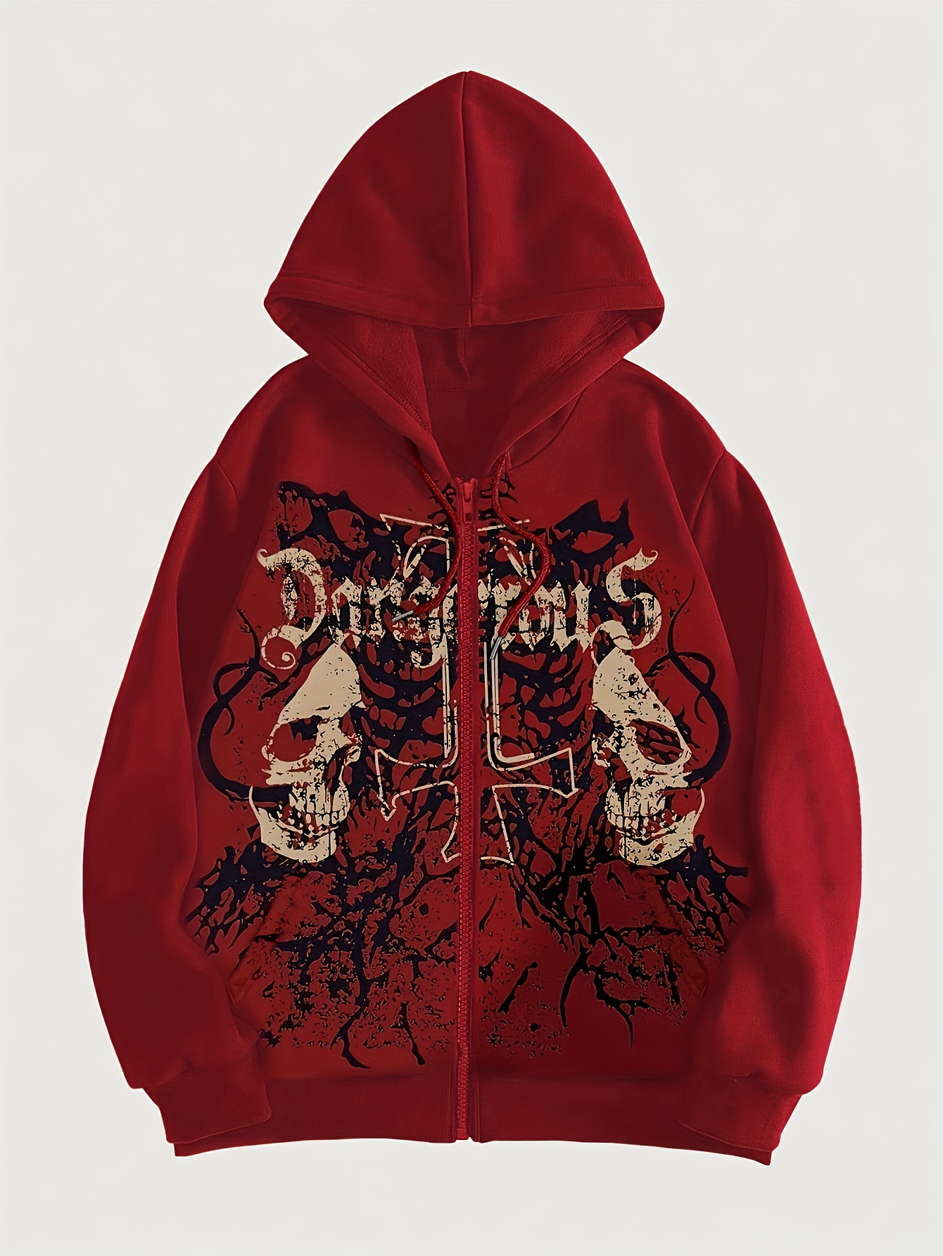 Trendy Pattern Women's Fashion Hooded Sweatshirt, Available in Christmas Red