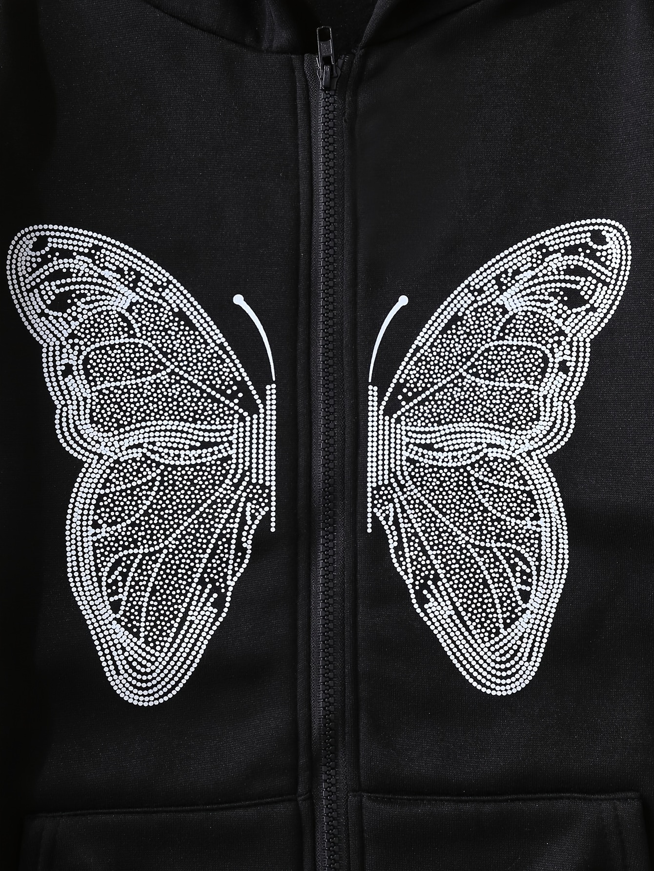 Y2K Butterfly Pattern Zip Up Hoodie, Casual Long Sleeve Drop Shoulder Hoodie, Women's Clothing